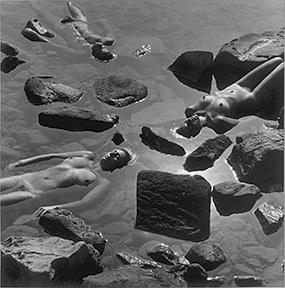 Fue a finales de los 70 cuando Karin descubrió la combinación del agua con los desnudos. La naturaleza cobraba fuerza en sus composiciones y se convertía en la base de todo su trabajo. Su interés en la experiencia humana, aunque esta vez de forma un poco más abstracta, impregnaba su obra. Y así llegó a unificar la naturaleza, el paisaje, con la figura humana. En esta original fusión Rosenthal trabaja tanto el blanco y negro como el color. Además, utiliza modelos masculinos y femeninos, si bien es cierto que la mujer tiene una presencia más amplia. Para la fotógrafa los contornos femeninos se parecían más a la tierra.