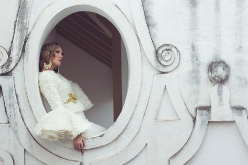 Para esta sesión de fotos me inspiré de carteles antiguos de feria. De hecho la foto del vestido de terciopelo en dorado podría pasar por un cartel de los años 30.