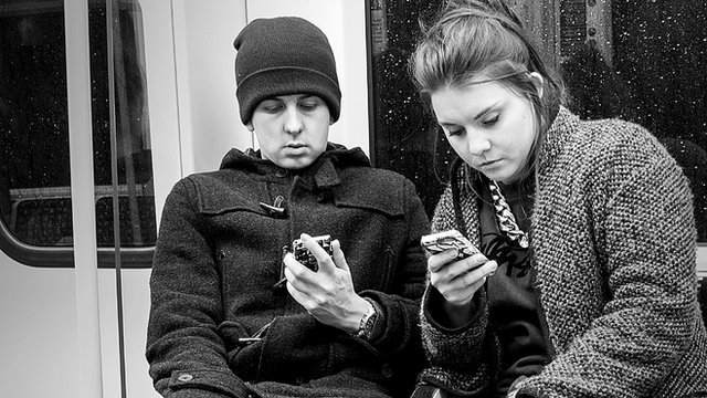 El fotógrafo urbano residente en Londres BabycakesRomero, lo tiene claro y lo dejó reflejado en una serie fotográfica llamada «Death of a Conversation» (“Muerte de la conversación”), en la que podemos observar a personas que están juntas pero no lo parece porque cada una está inmersa en su dispositivo móvil. Romero no tiene móvil porque él, siendo una persona dedicada a la observación, se perdería mucho de lo que pasa en el mundo si observara únicamente el contenido de su celular y por ello recorre las calles de Londres únicamente con su cámara en mano.